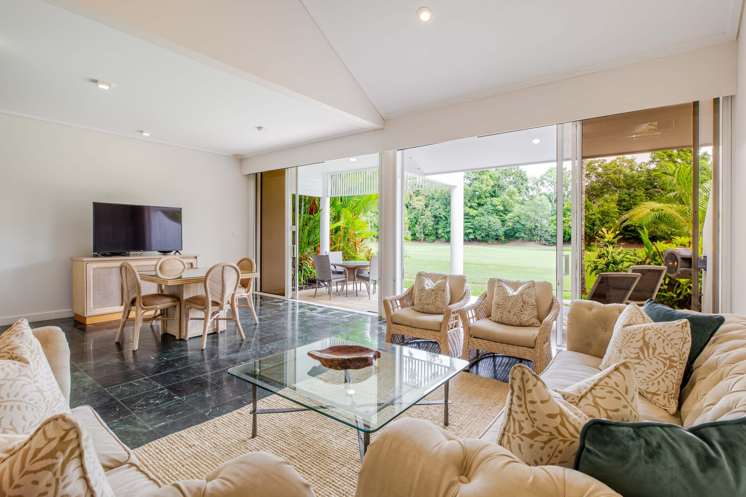 Situated within the beautiful beachfront complex of the Mirage Resort, surrounded by 130 hectares of lush tropical gardens and an 18-hole golf course, Villa 124 is located on the northern side of the grounds and forms part of a block of 4 villas. Well maintained and bordered by landscaped gardens, it’s conveniently close to the resort’s central facilities, the iconic Four Mile beach and only a few minutes’ drive into town.